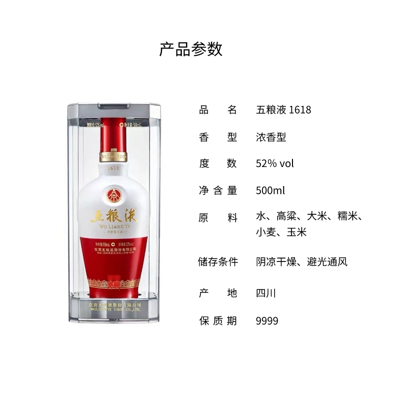 五粮液1618(瓷) 52度500ML 零售价1199元 批发价990元