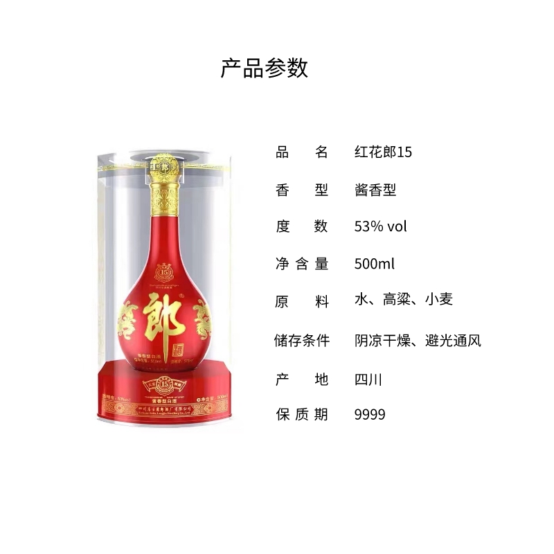 郎酒 红花郎15年 53度500ML 零售价624.99元 批发价558元