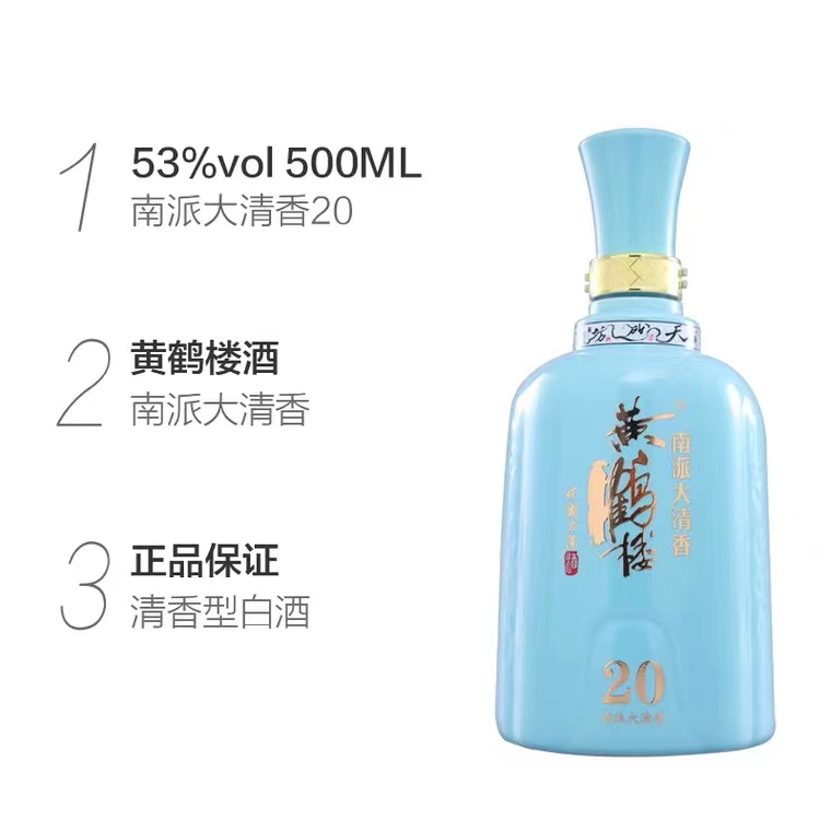黄鹤楼南派大清香20 53度500ML 零售价649元 批发价495元